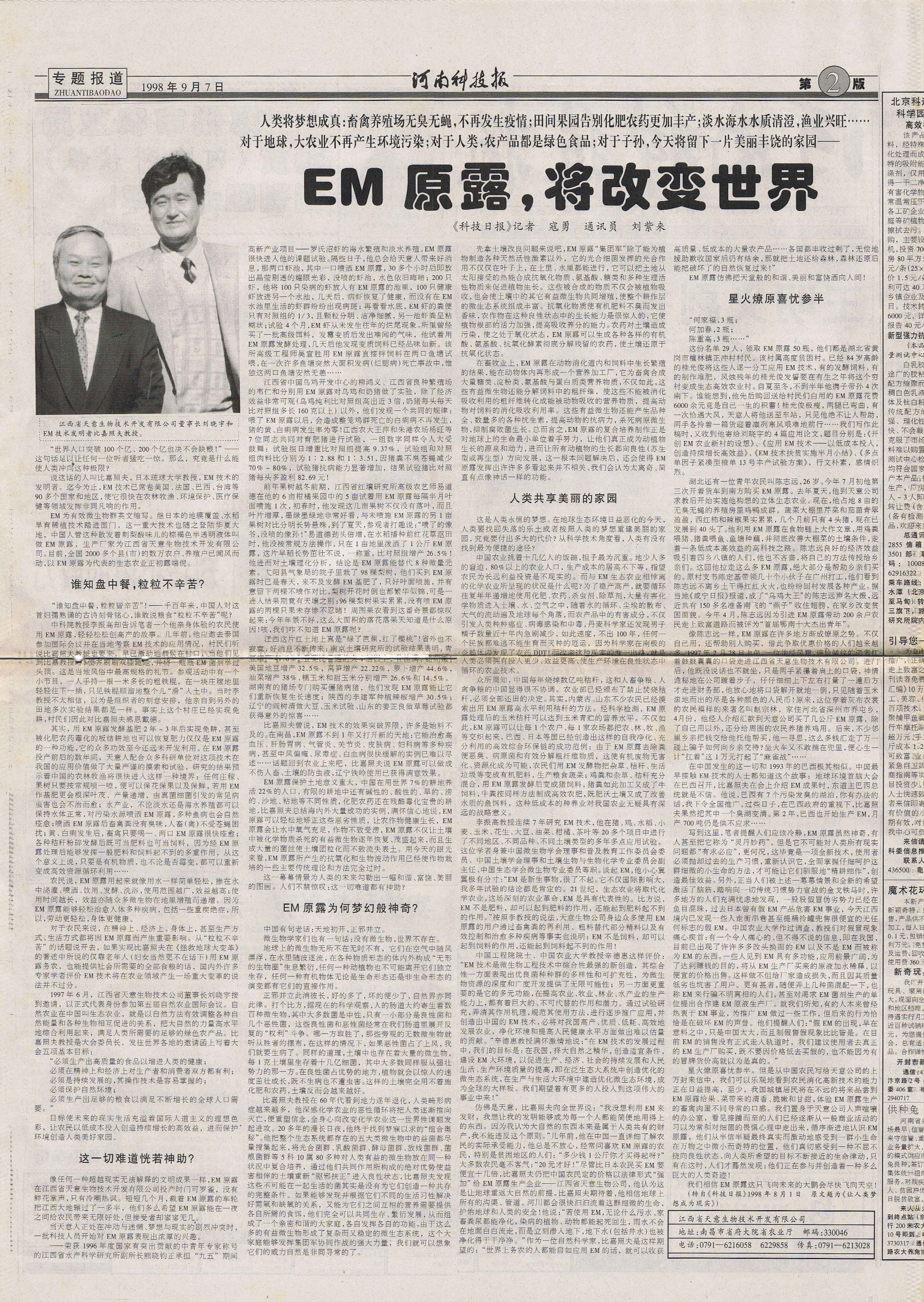 北京科技報:EM原露改變人類命運